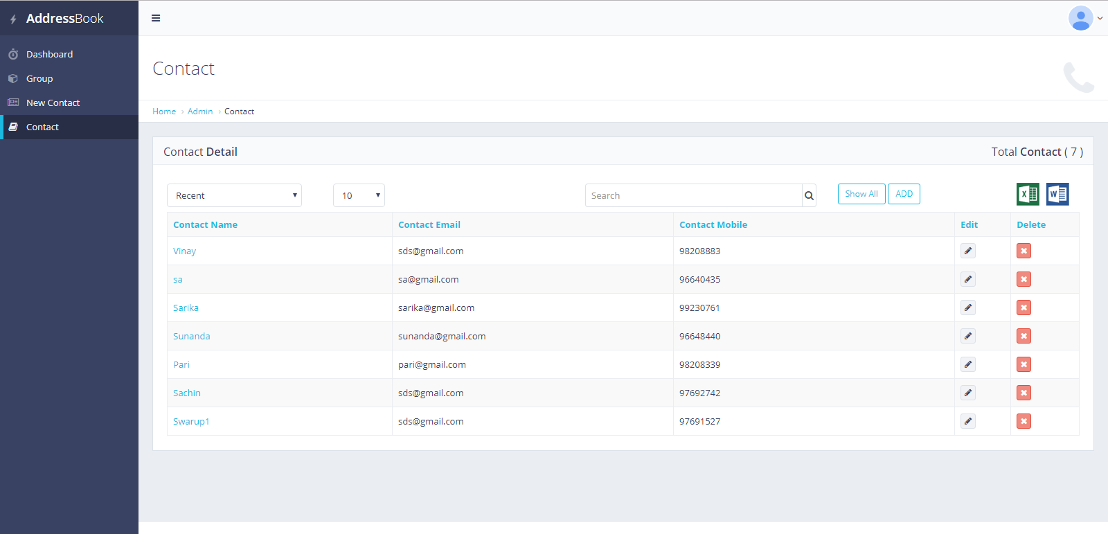 Manage group wise contacts and create unlimited contact lists which are customizable, sortable and searchable. Keep your address book updated, clean, and always available.