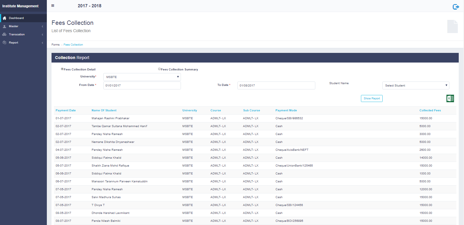 Institute Management System is designed to automate the management process of an institute operations such as Student Admission Management, Fees Management, Result Management, MIS Reporting etc.