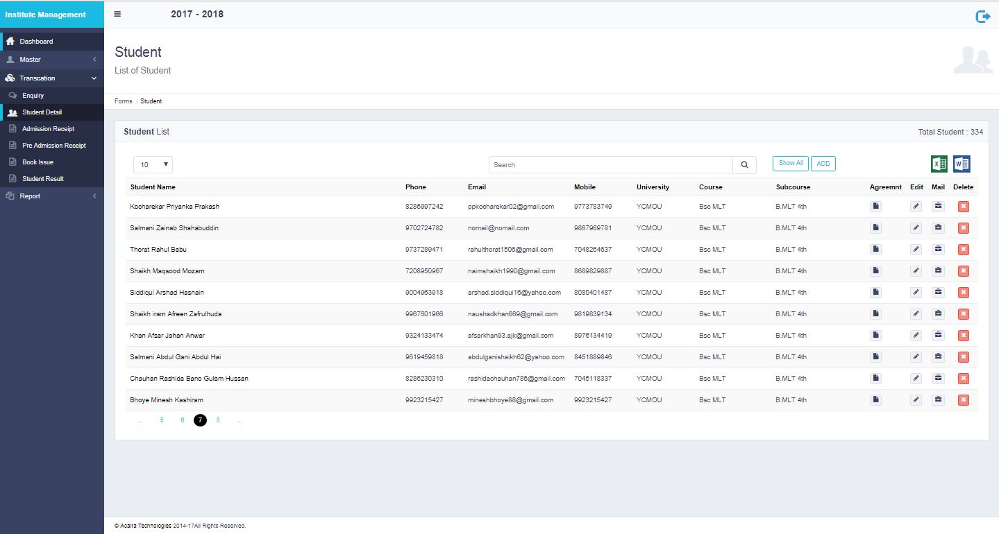 Student management system provide capabilities for registering students in courses, documenting and managing many other student-related data needs in an Institute.