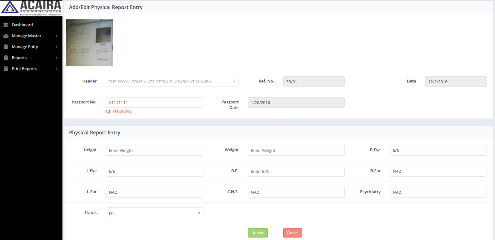 The second stage is the Physical test. Like the Lab test, the Physical test is also being updated by the users once completed. Here, you can handle multiple types of Physical test. Medical Management System contains all the main features which are difficult to handle.