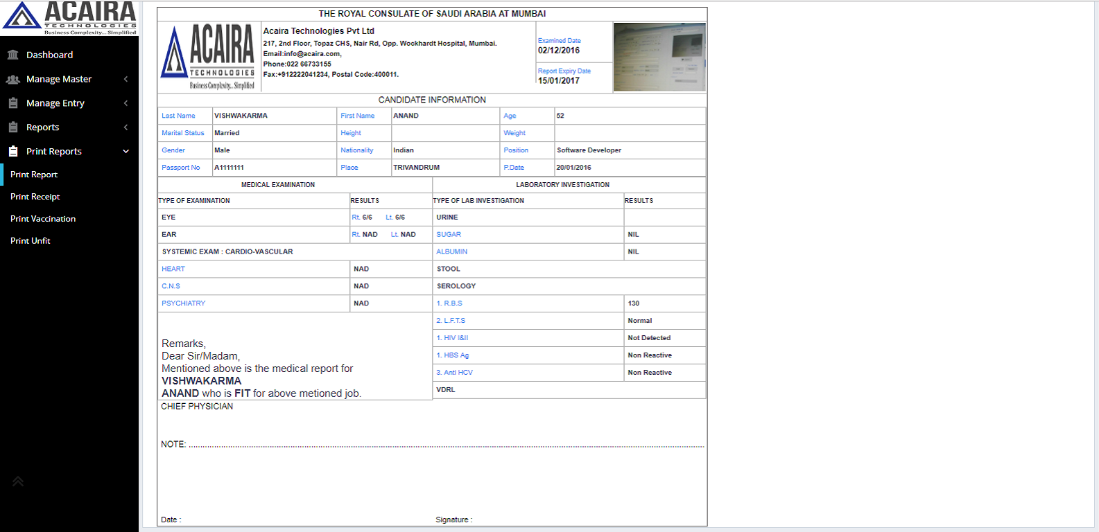 Enter Passport No. to print the Bracode and Internal Sheet of the candidate. This is used for internal works.