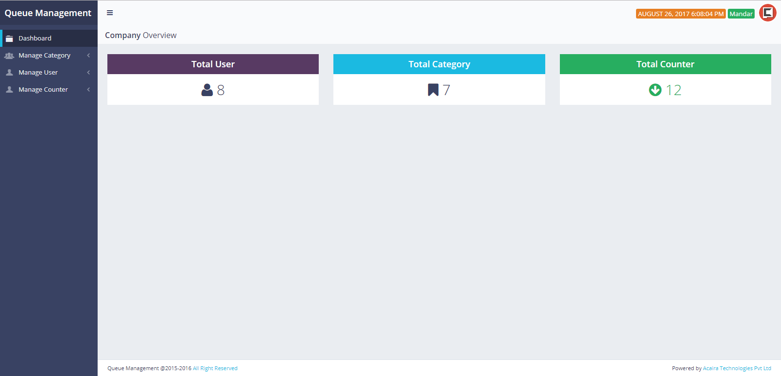 QMS has the admin management where the admin has the rights to create user, category and counter to manage the flow of the QMS.
