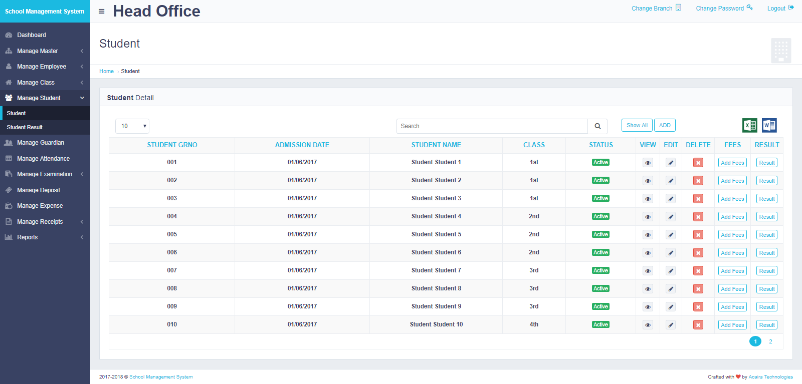Get instant access to students's details with an easy search option. Schools can manage studentdetails easily with view and edit option.