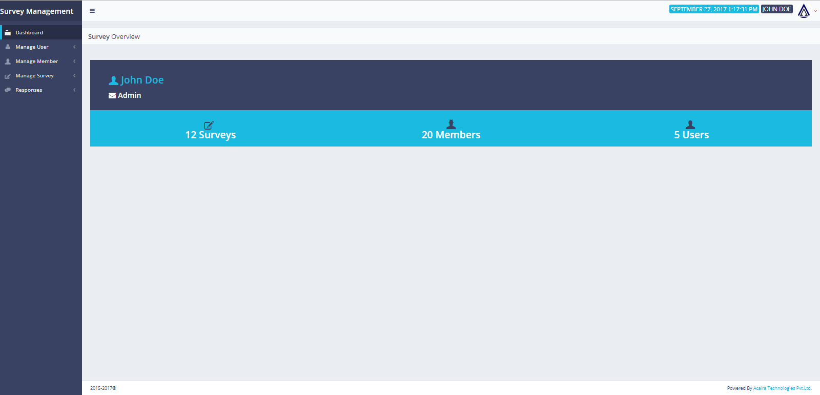 Survey Management System is relevant for organizations that require surveying and interviewing techniques to measure opinion amongst different participant's levels and categories.