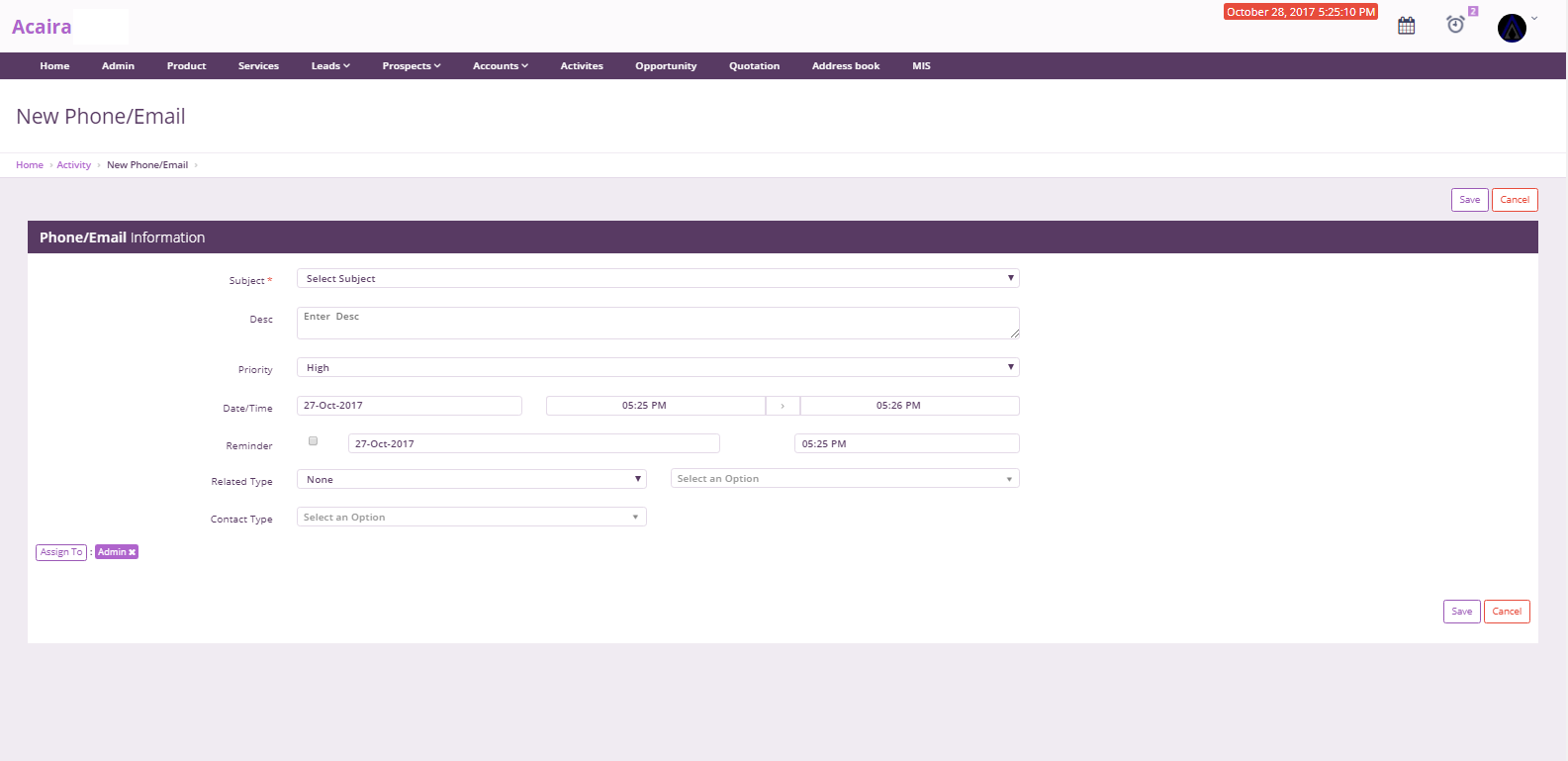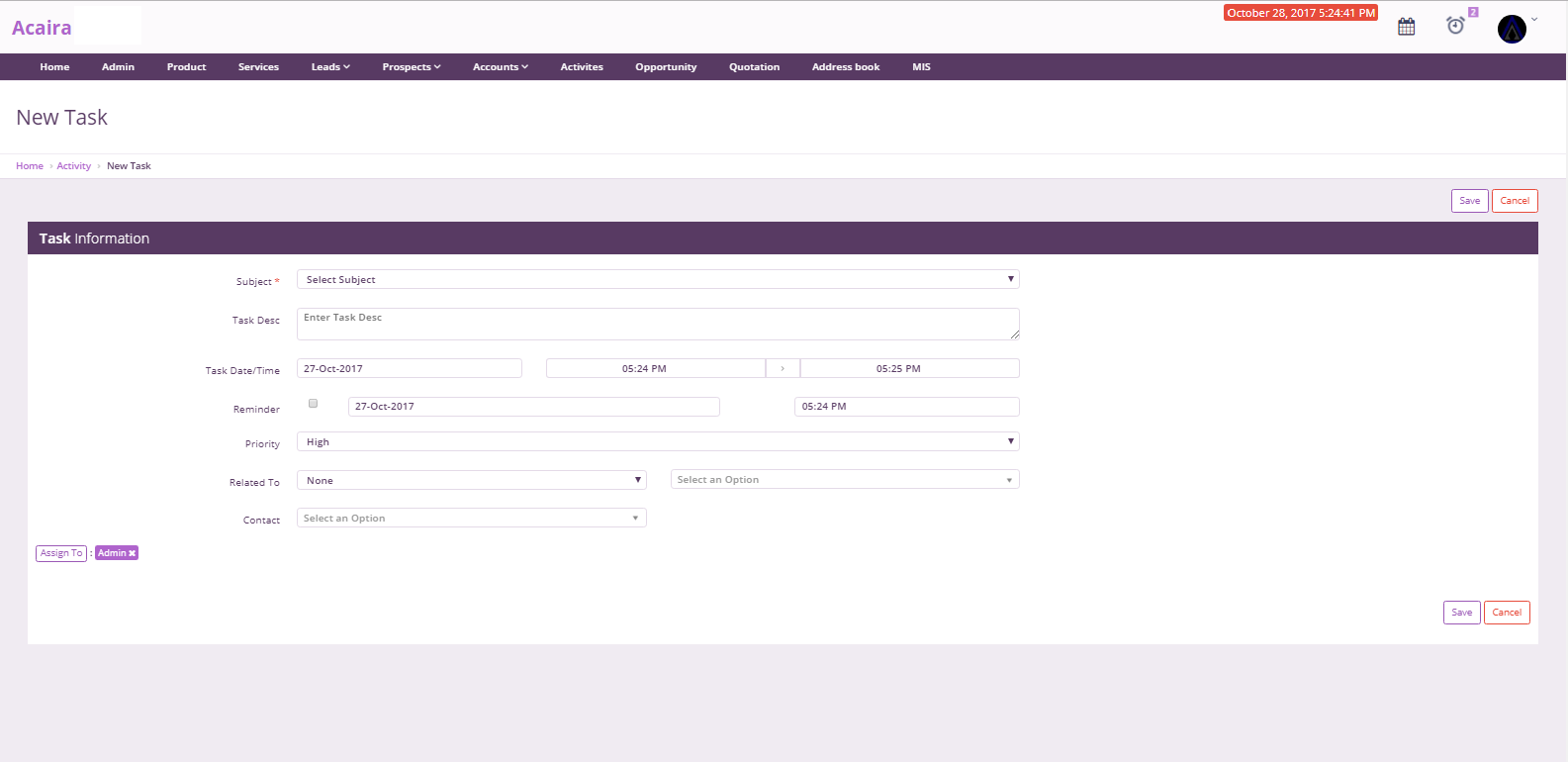Activities Management enables you to create and view all your tasks and events in a single place. Users can update activity progress, track team progress, set reminders, and assign tasks as well.