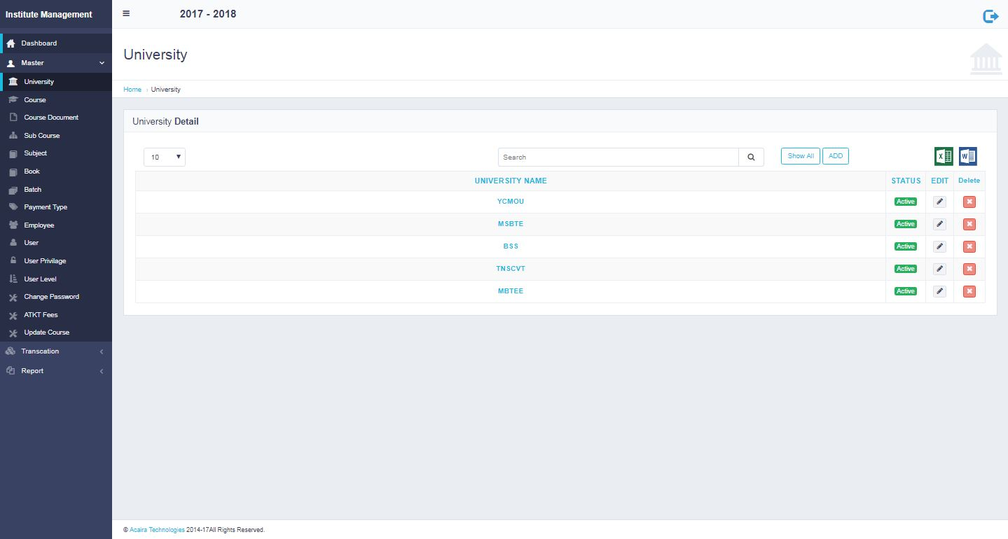 A flexible data model that enable users to make master of University, Course, Sub-Course, Subject etc.