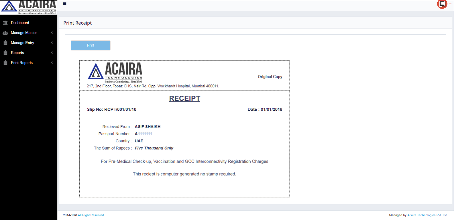 Enter Passport No. to print the Bracode and Internal Sheet of the candidate. This is used for internal works.