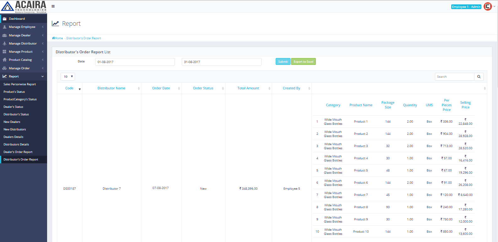 Distributor's Order Report will help you to track down the orders of different distributors. By analyzing these reports you will be able to take decisions on your finances and future business plans.