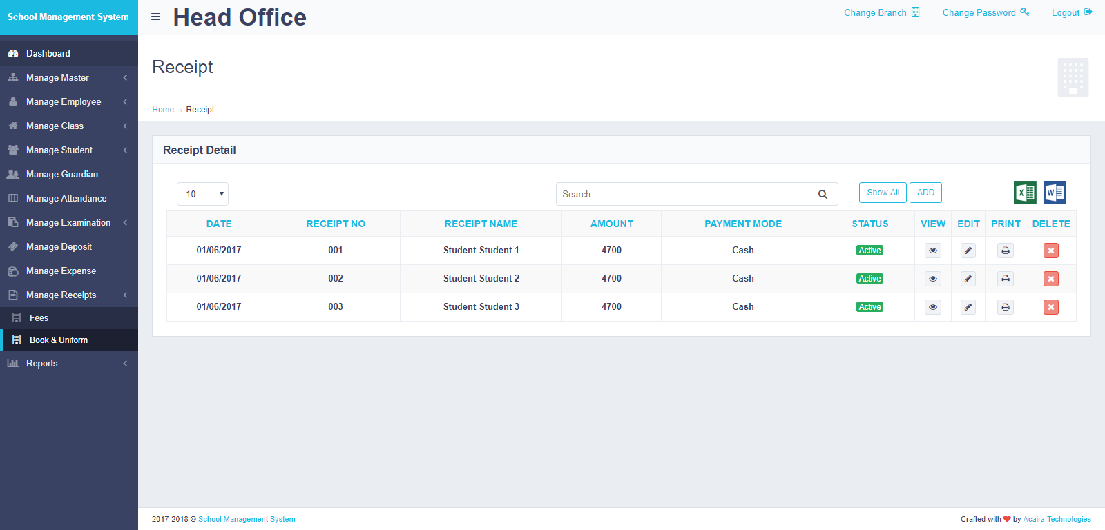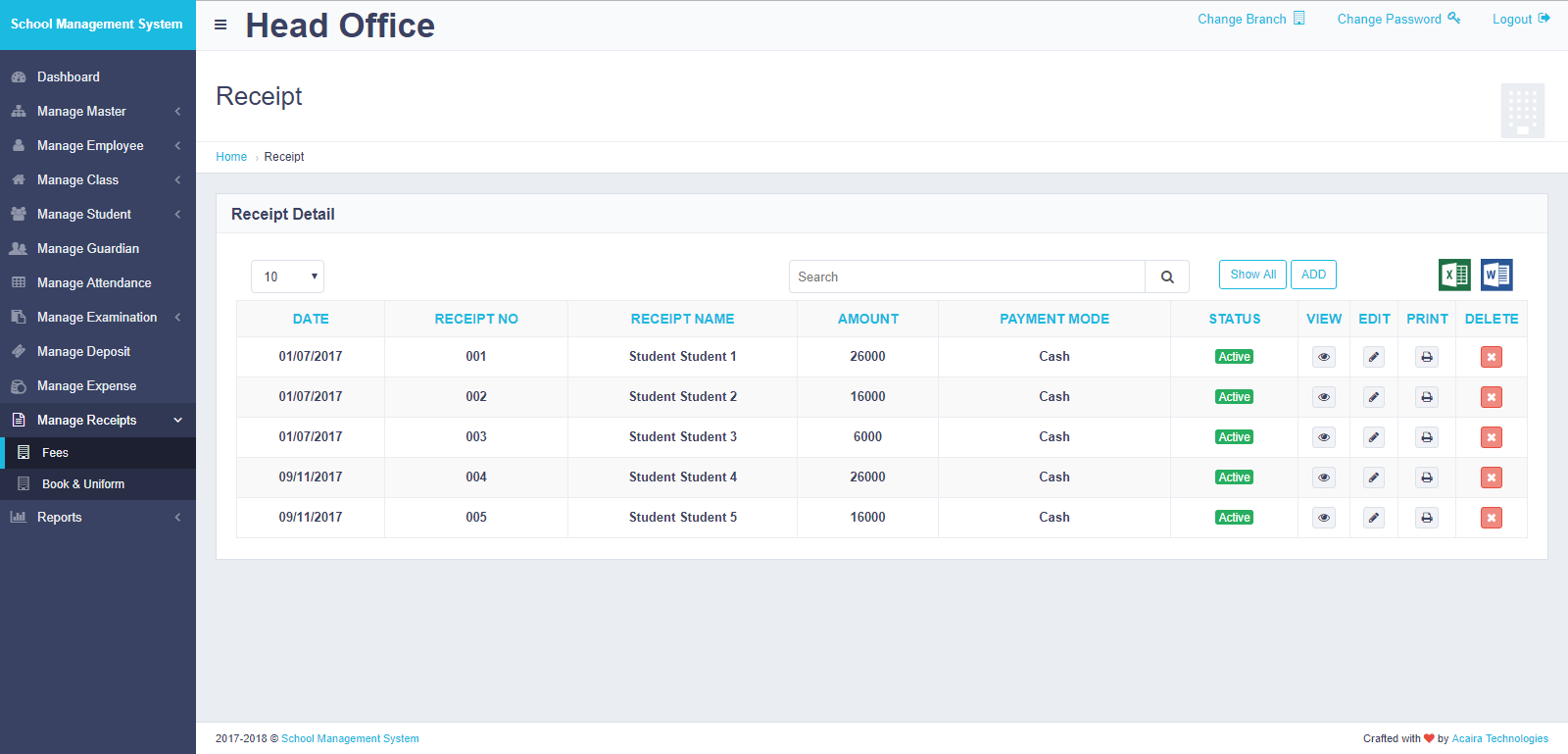 Fees receipt is most important for all school. As it is related to finance it needs be understandable and easily manageable so that there is no chance of error.