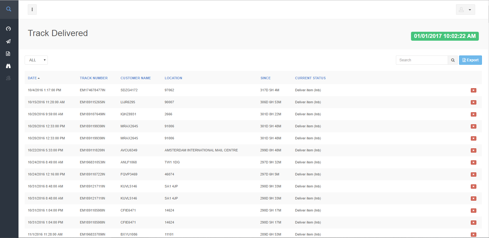 Tracker 360 also gives the realtime information of delivered track. You can search the delivered track and export the list into Microsoft Excel.